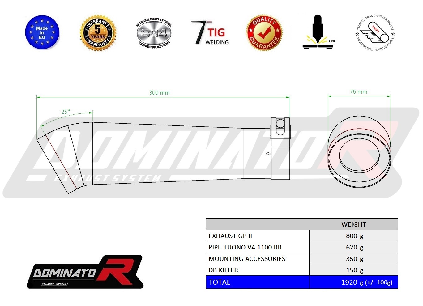 • 5 years Dominator Official Warranty