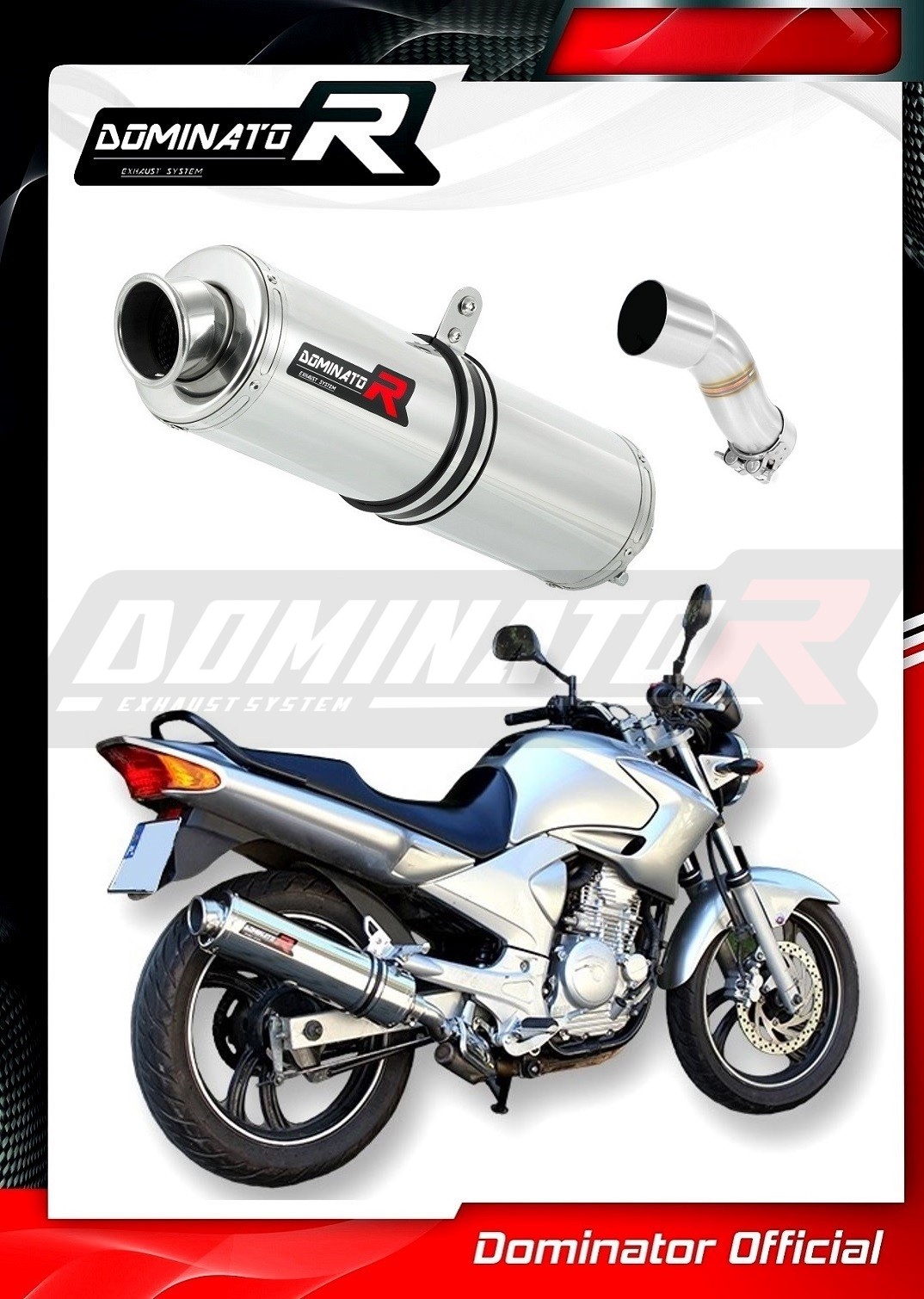 The Dominator Exhaust will change the nature of your motorcycle giving it a unique sound. The Exhaust system will increase the power and torque of the engine, while reducing the weight of the muffler.