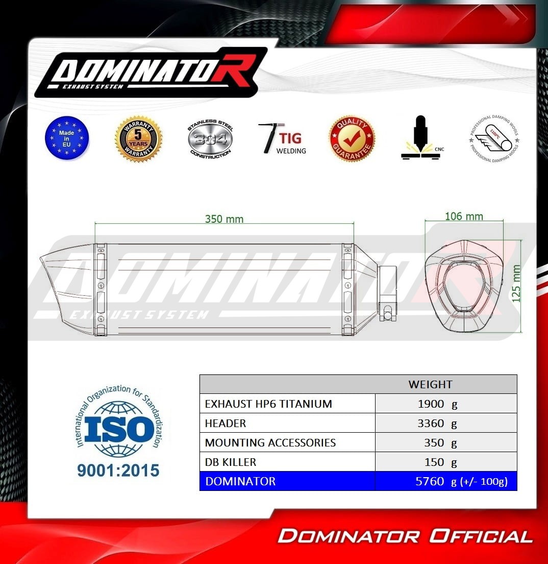 Exhaust System DOMINATOR with HP6 Titanium Muffler fits to: