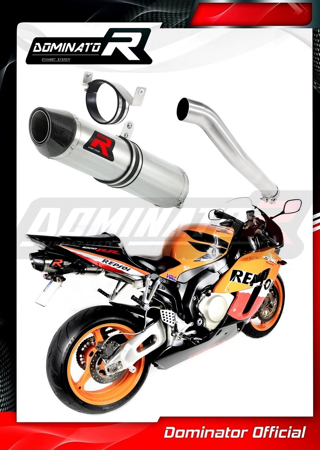 Lo scarico Dominator cambierà il carattere della tua moto dandole un suono unico. Il Sistema di Scarico continuo farà aumentare la potenza e la coppia del motore, riducendo così il peso del silenziatore.